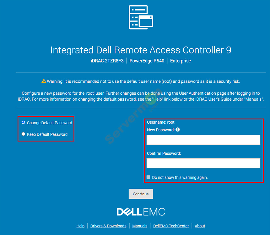 7. 로그인하면 default PW를 변경할것인지 유지할것인지 설정하는 창이 나옵니다.