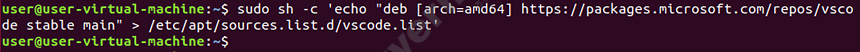 $sudo sh -c 'echo "deb [arch=amd64] https://packages.microsoft.com/repos/vscode stable main" > /etc/apt/sources.list.d/vscode.list'