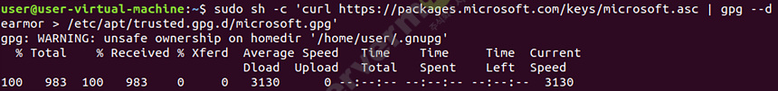 $sudo sh -c 'curl https://packages.microsoft.com/keys/microsoft.asc | gpg --dearmor > /etc/apt/trusted.gpg.d/microsoft.gpg'