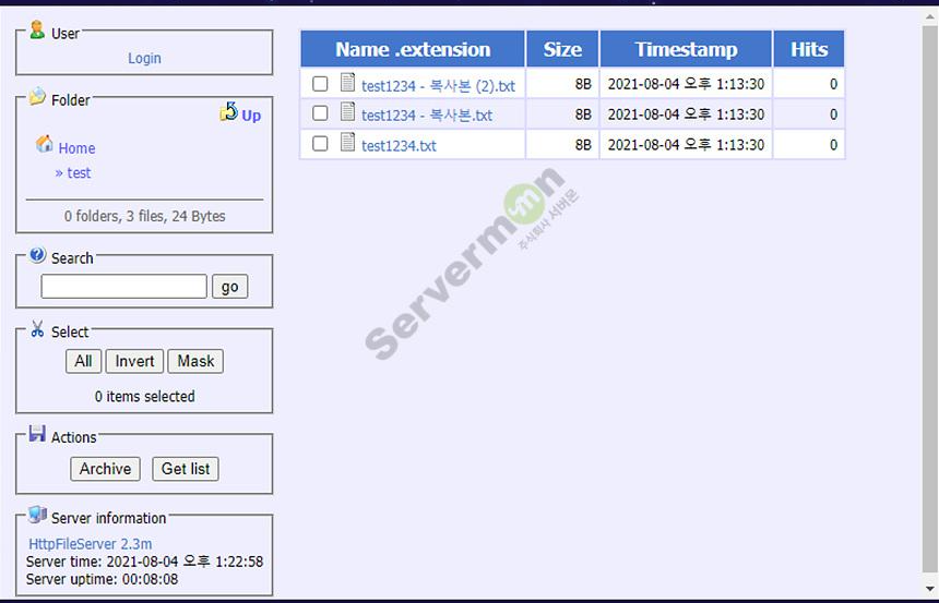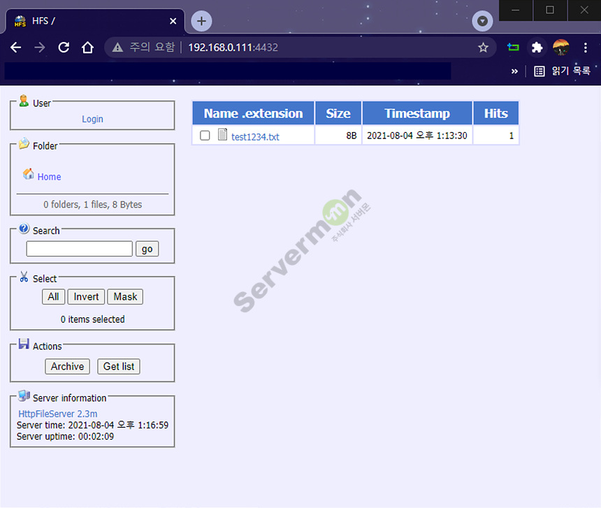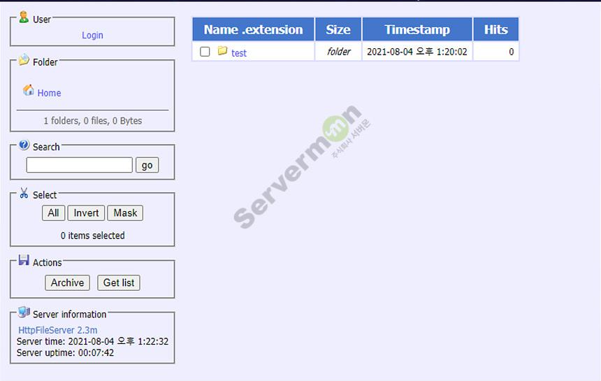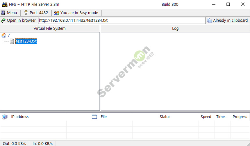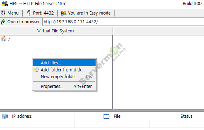 hfs 프로그램에 test 파일을 Add files... 로 업로드 합니다.