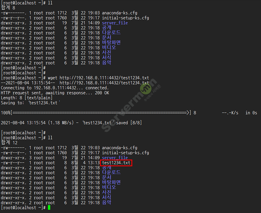 파일이 추가 되었고 웹페이지와 linux 서버에서 파일을 다운로드 받아 보겠습니다.