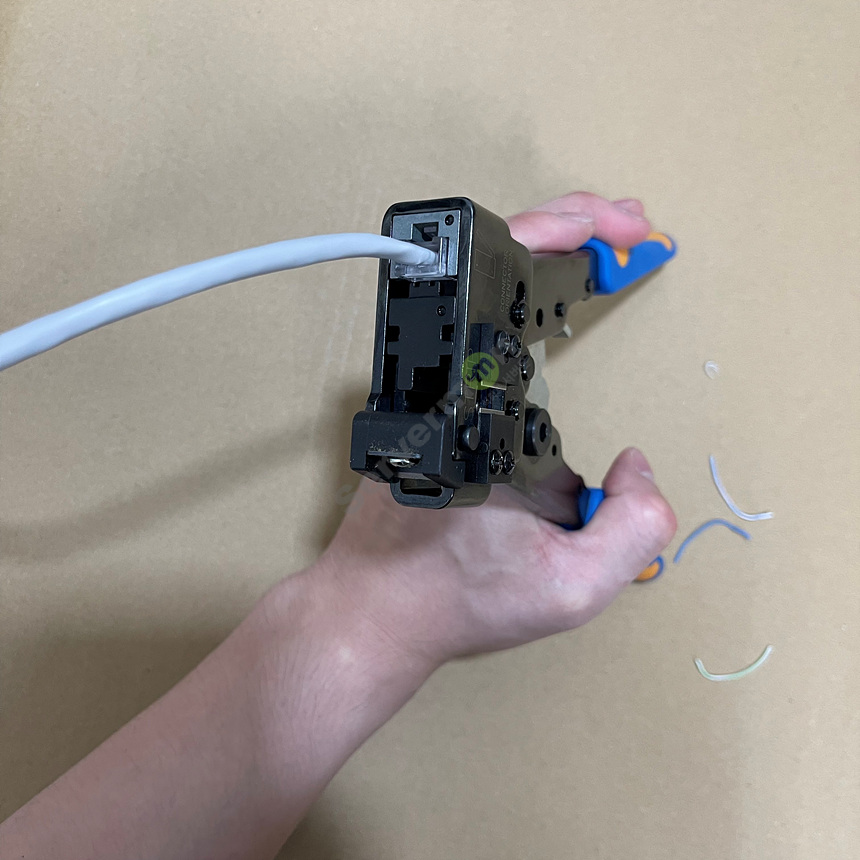 7. 스트리퍼를 이용하여 RJ45를 꽉 눌러주도록 합니다.