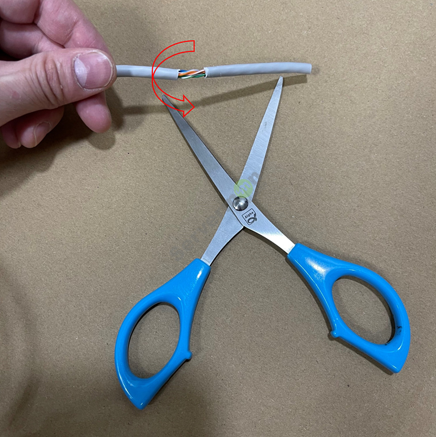 3. 가위로 두바퀴정도 돌려 케이블을 탈피시켜줍니다.