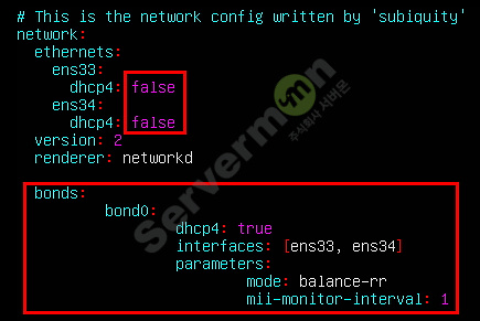 (하기 예제에서는 bond 0 를 DHCP 설정으로 진행 하였습니다.)