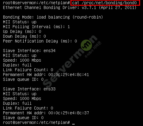 11. 추가적으로 하기의 명령을 통하여 본딩 상태를 확인 할 수 있습니다.