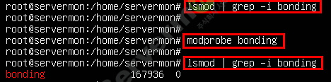 모듈 적재 후 lsmod 명령을 통하여 bonding 모듈 적재가 잘 되었는지 확인 합니다.