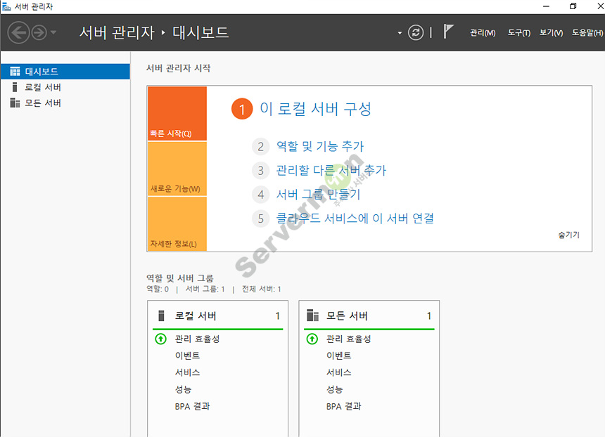 3. 서버관리자를 실행하여 역할 및 기능 추가로 진입합니다.