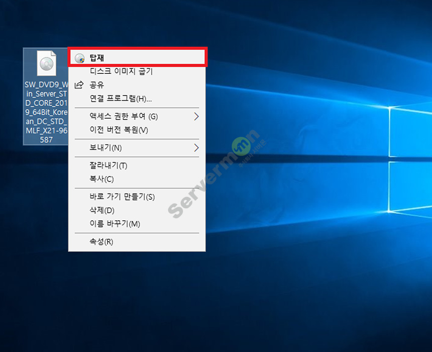 1. Windows Server 2019 설치 CD를 삽입하거나, ISO 파일을 Windows 탐색기에서 탑재 시킵니다.