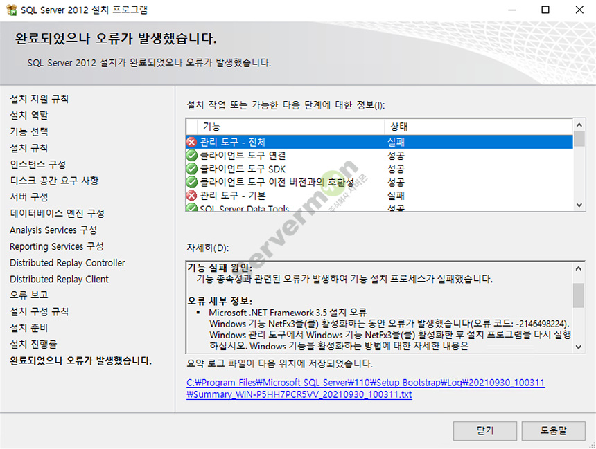 예시로 사용한 MSSQL 2012 의 경우 해당 과정을 Skip 하게되면 정상적으로 설치되지 않습니다.