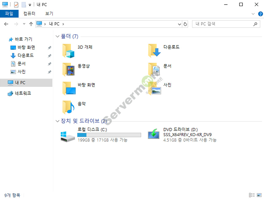 1. Windows Server 2019 설치 CD를 삽입하거나, ISO 파일을 Windows 탐색기에서 탑재 시킵니다.