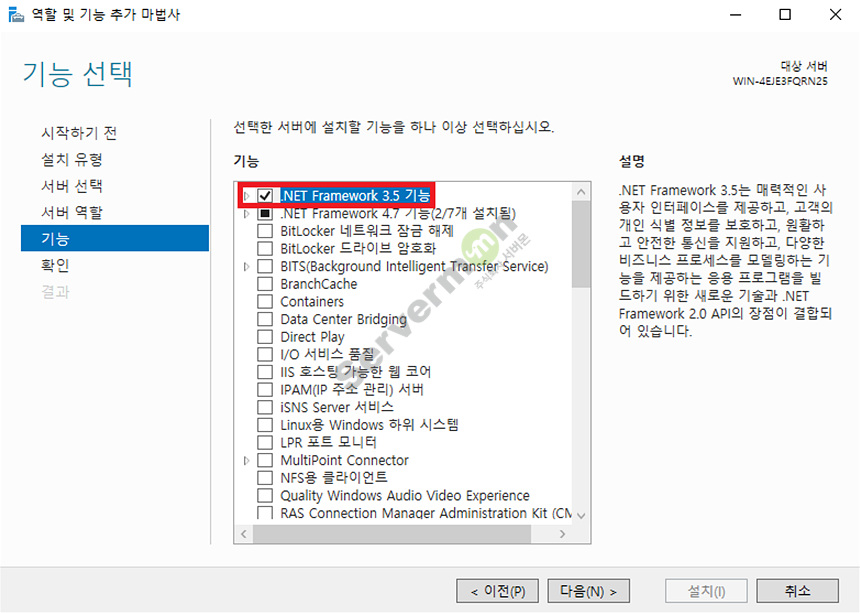 Windows Server 2019에서 닷넷 프레임워크 (.NET FrameWork) 3.5 버전을 사용하는 프로그램 (ex : MSSQL 2012 등) 을
