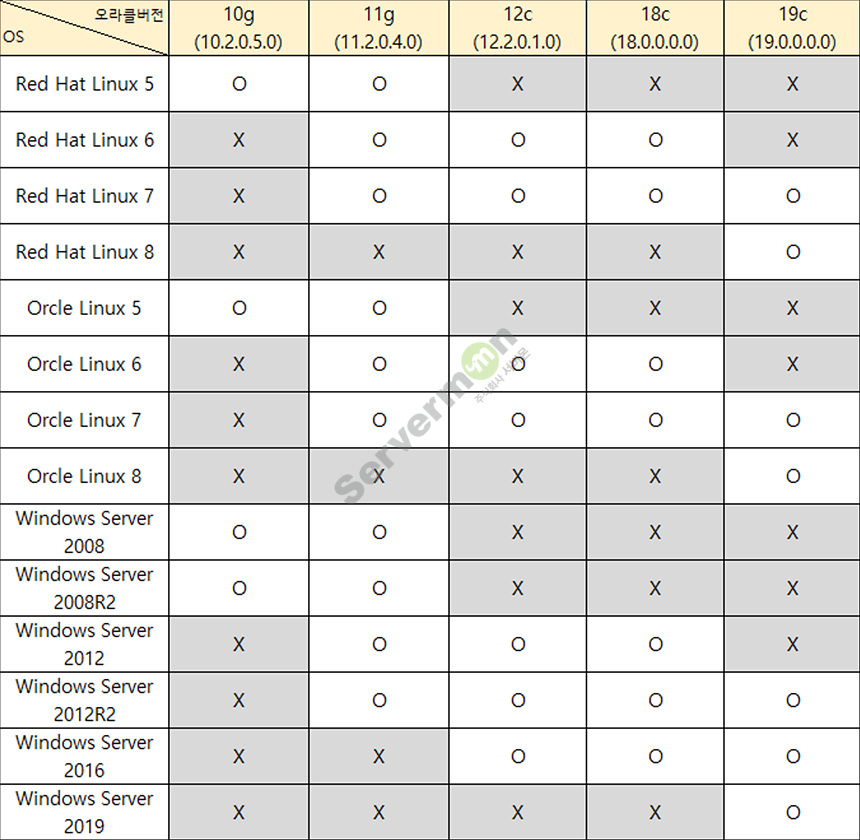 오라클 Database 버전별 OS 지원여부에 대해 알아보겠습니다.
