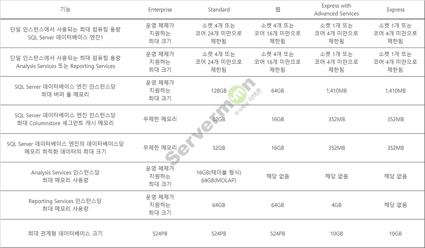 * 전체 DB서버 용량 제한이 아니며, 개별 DB용량 한도입니다.