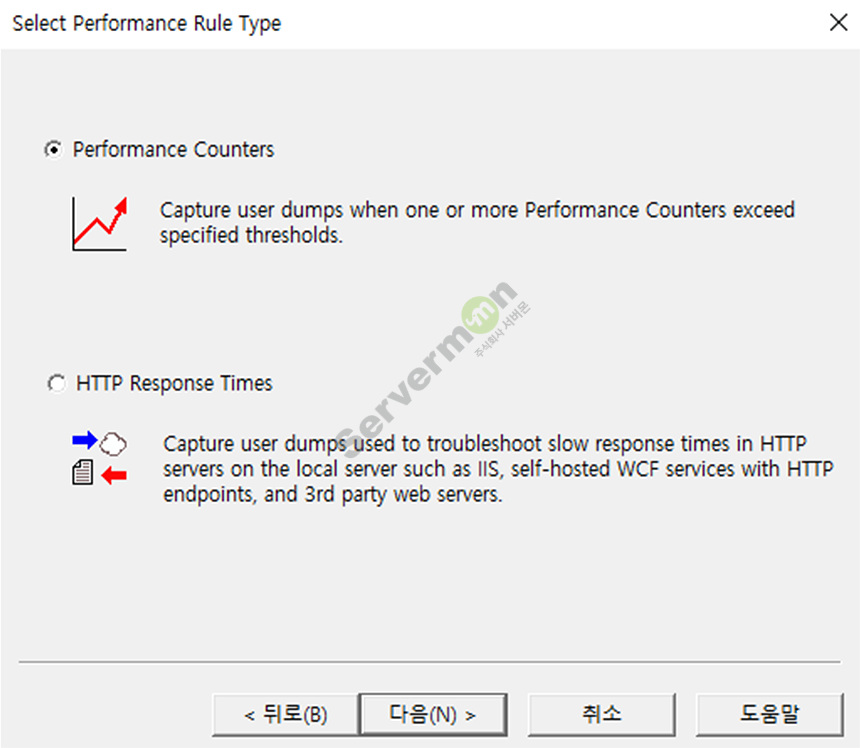 다음 탭에서 Performance Counter 을 선택하고 다음으로 진행합니다.