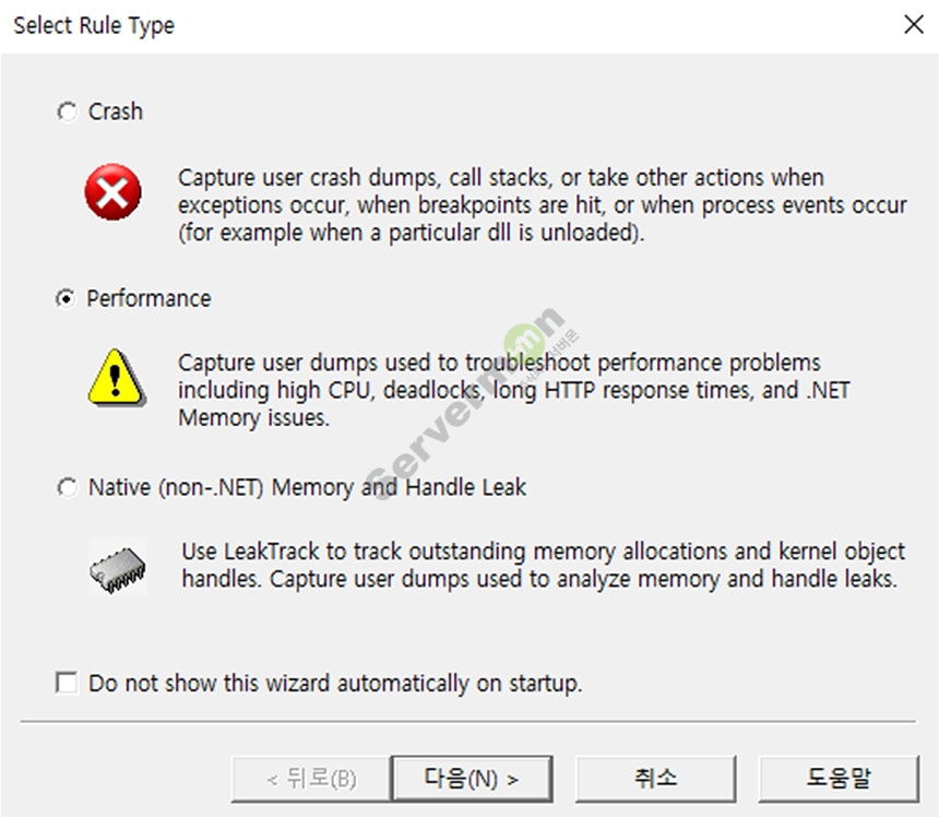 2) Performance 는 성능상 문제가 발생할 때 덤프를 수집할 수 있습니다. (행 발생 시 주로 사용 됨)