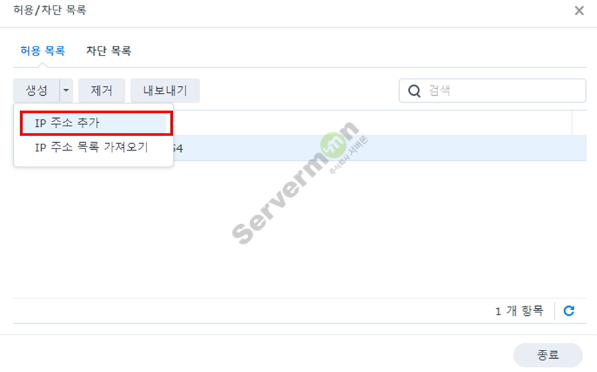 5. "허용/차단" 목록을 클릭하면 현재 허용 및 차단당한 IP를 확인 할 수 있습니다.