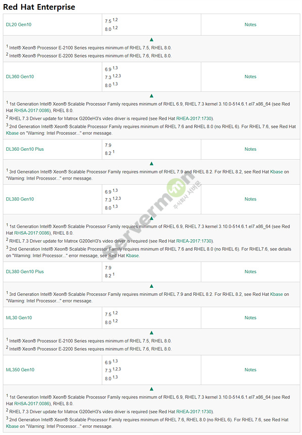 # HPE Gen10 RedHat 호환여부