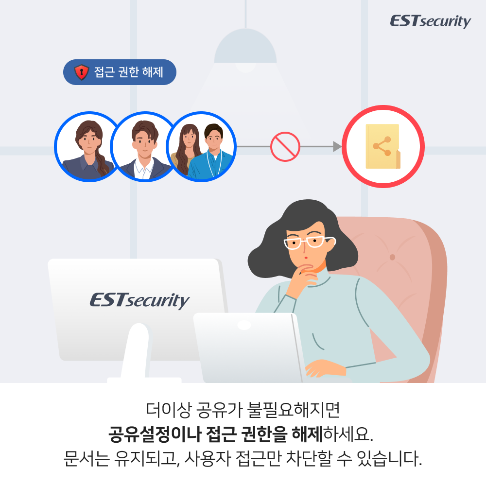 이스트시큐리티에서 문서중앙화 솔루션으로 더욱 안전하게 재택근무를 시작하는 방법을 시리즈 카드뉴스로 제시합니다.