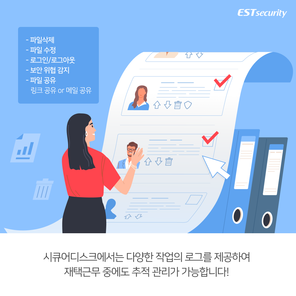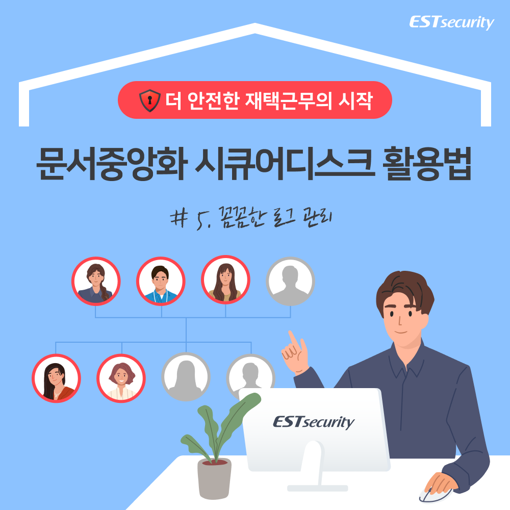 이스트시큐리티에서 문서중앙화 솔루션으로 더욱 안전하게 재택근무를 시작하는 방법을 시리즈 카드뉴스로 제시합니다.