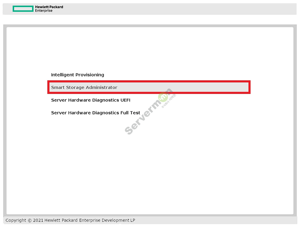 방향키를 이용해 두 번째의 'Smart Storage Administrator' 메뉴를 선택한 후 [ Enter ]를 눌러 진입합니다.