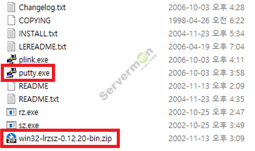 # 다운로드 받아 압축을 해제하면 Putty 를 포함한 파일들이 압축해제 되며, 그안에 있는