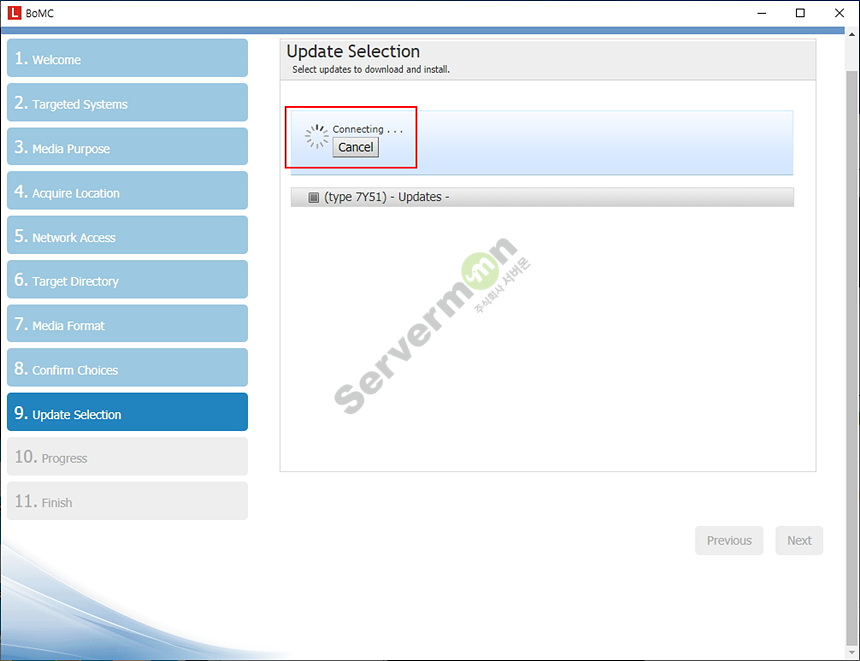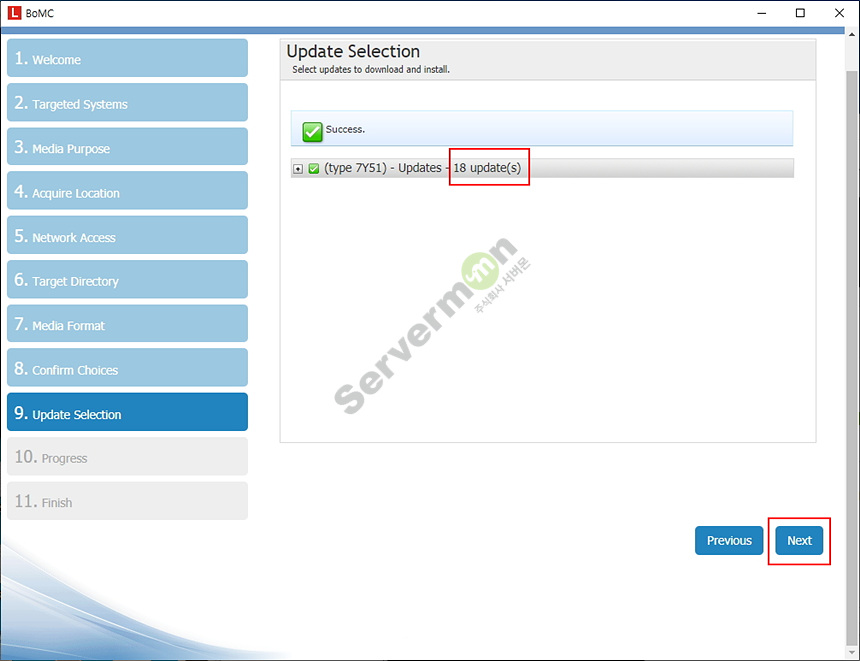 9. 다음 단계로 진행 하면 업데이트 서버와의 통신을 해서 어떤 항목을 다운로드 하는지 확인 절차를 거치게 됩니다.