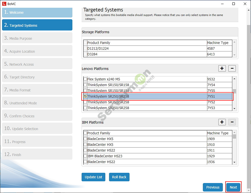 예시에서는 장비 모델 : SR250 / Machine Type : 7Y51로 선택 하였습니다.