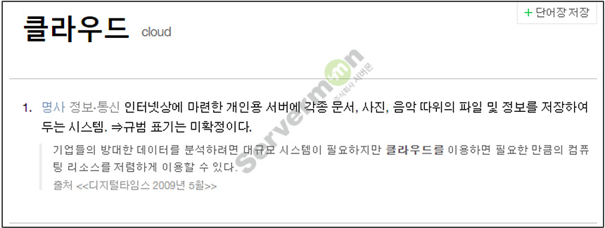 클라우드란 말 그대로 Cloud(구름) 을 의미 하는데, 인터넷 사전을 찾아 보게 되면 아래와 같이 규정 하고 있습니다.
