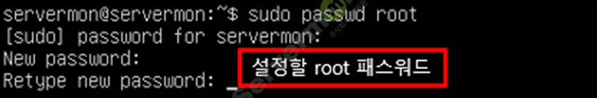 Ubuntu 경우 OS 설치후 root 계정의 패스워드를 별도로 설정을 해주어야 합니다.