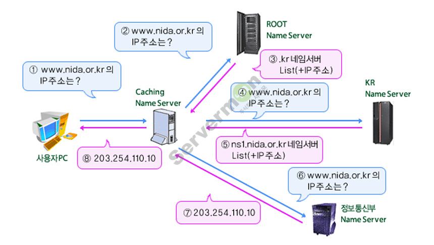 이는, 서버의 IP주소 (예시 : 네이버 / 223.130.200.104) 를 도메인 네임 (예시 : 네이버 / www.naver.com) 으로