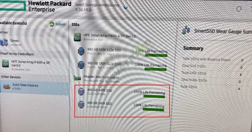 이후 SSA (Smart Storage Administrator)에서 확인 해 보면 정상적으로 M.2 SSD가 인식 된 모습을 확인 할 수 있습니다.