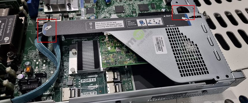 이 상태로 라이저 카드를 서버의 PCI 슬롯에 재 장착 합니다.