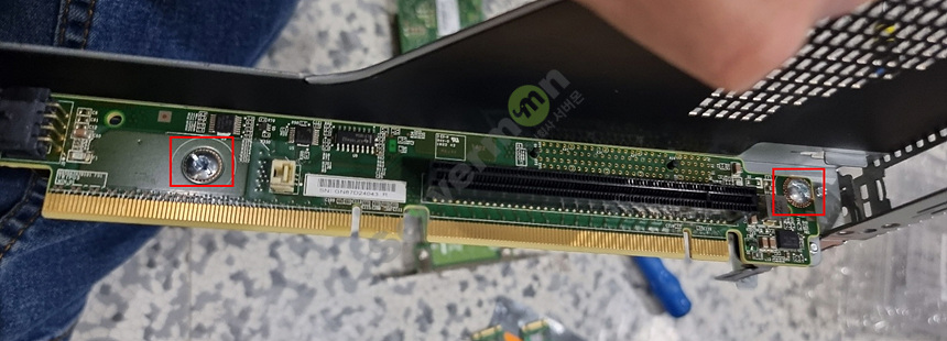 이 상태로 라이저 카드를 서버의 PCI 슬롯에 재 장착 합니다.