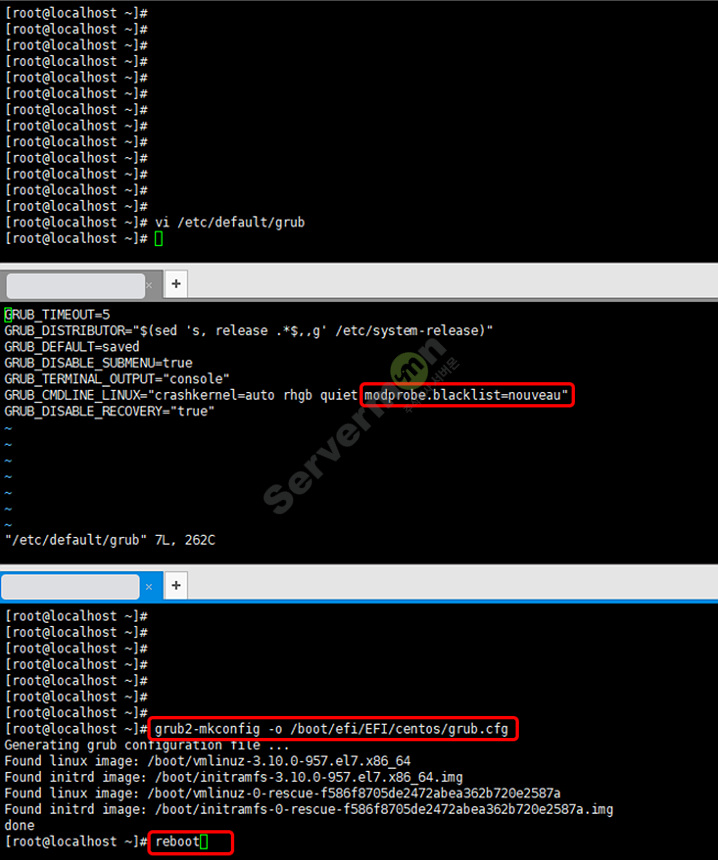 nouveau blacklist 설정을 합니다.