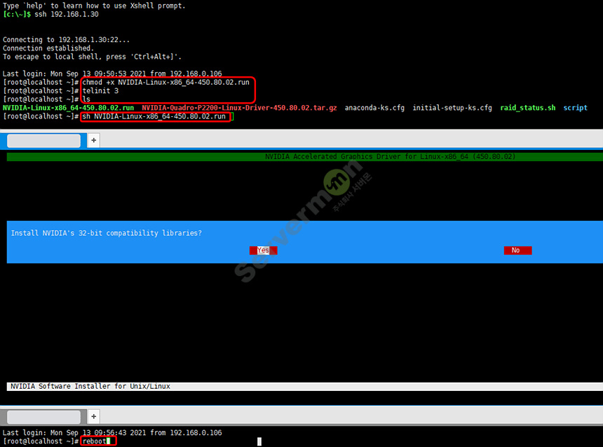 sh NVIDIA-Linux-x86_64-430.34.run // 설치 스크립트 실행 후 모두 Yes