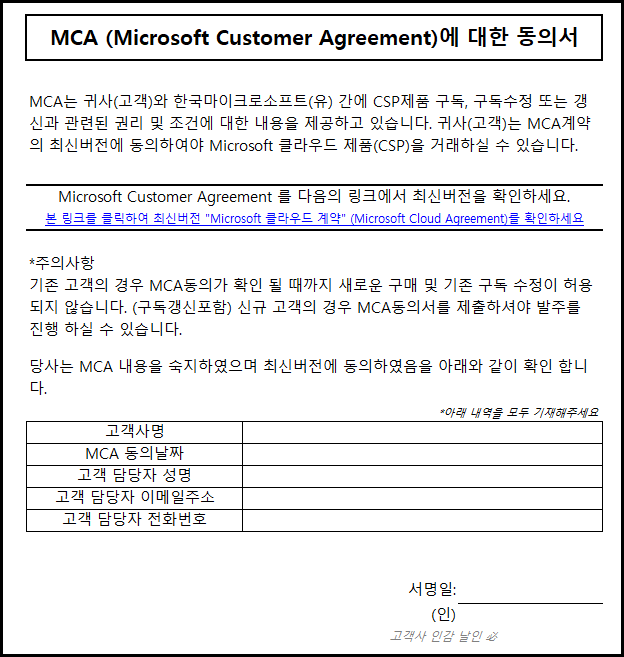 MCA(Microsoft Customer Agreement) 동의서