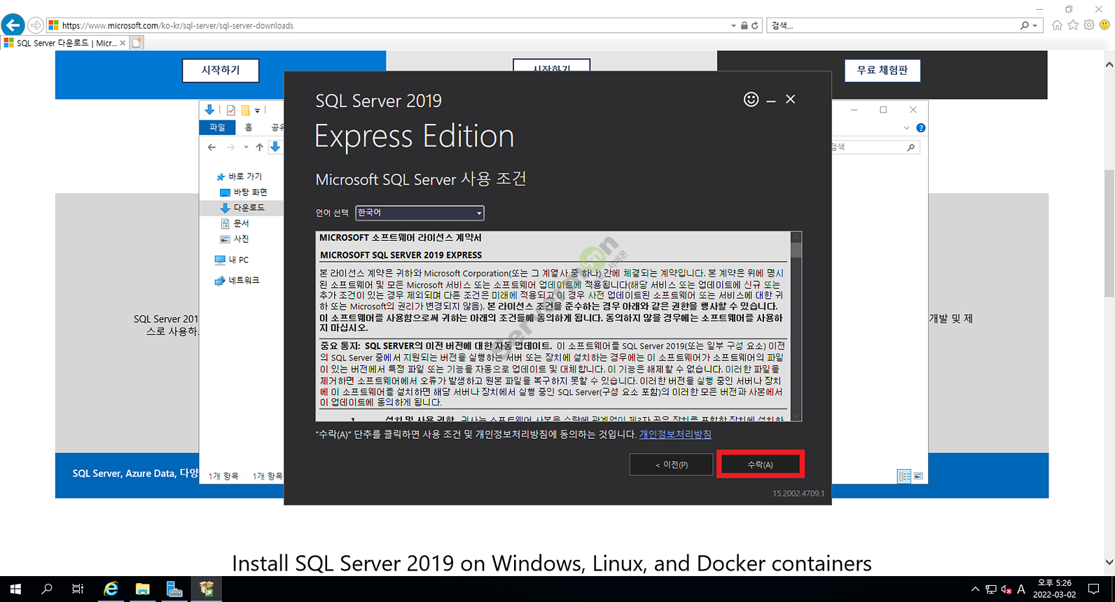 사용조건을 [수락(A)]하여 설치를 진행합니다.