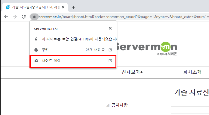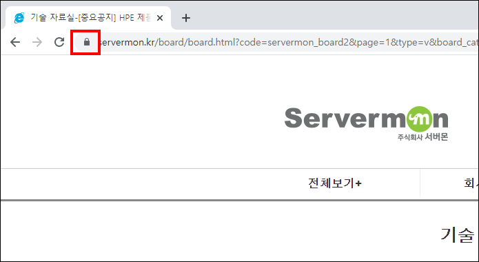 1. 브라우저 주소표시줄의 자물쇠를 클릭 합니다.