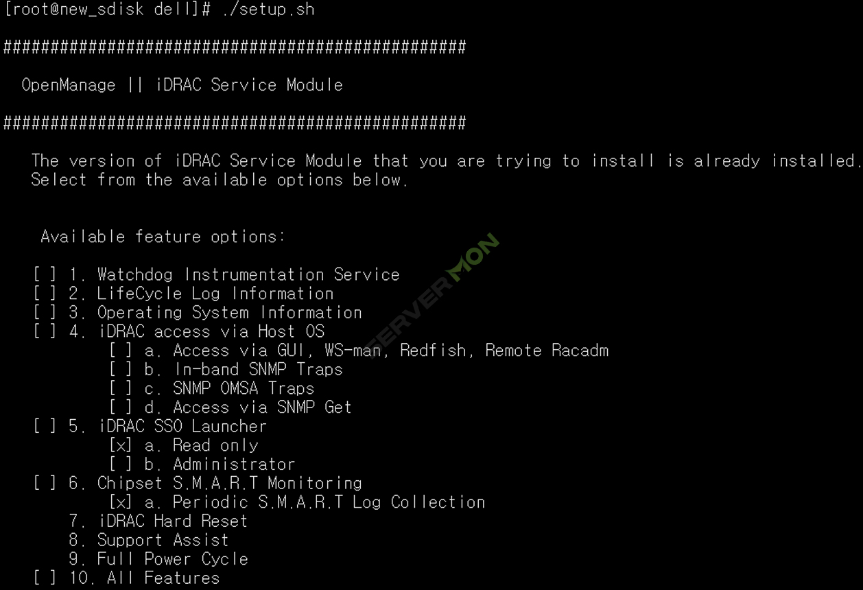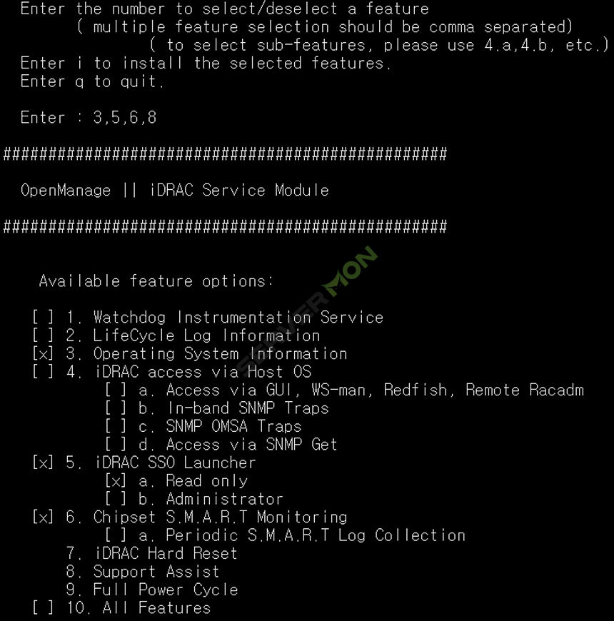 필요한 옵션을 확인하여 해당하는 번호를 입력합니다.