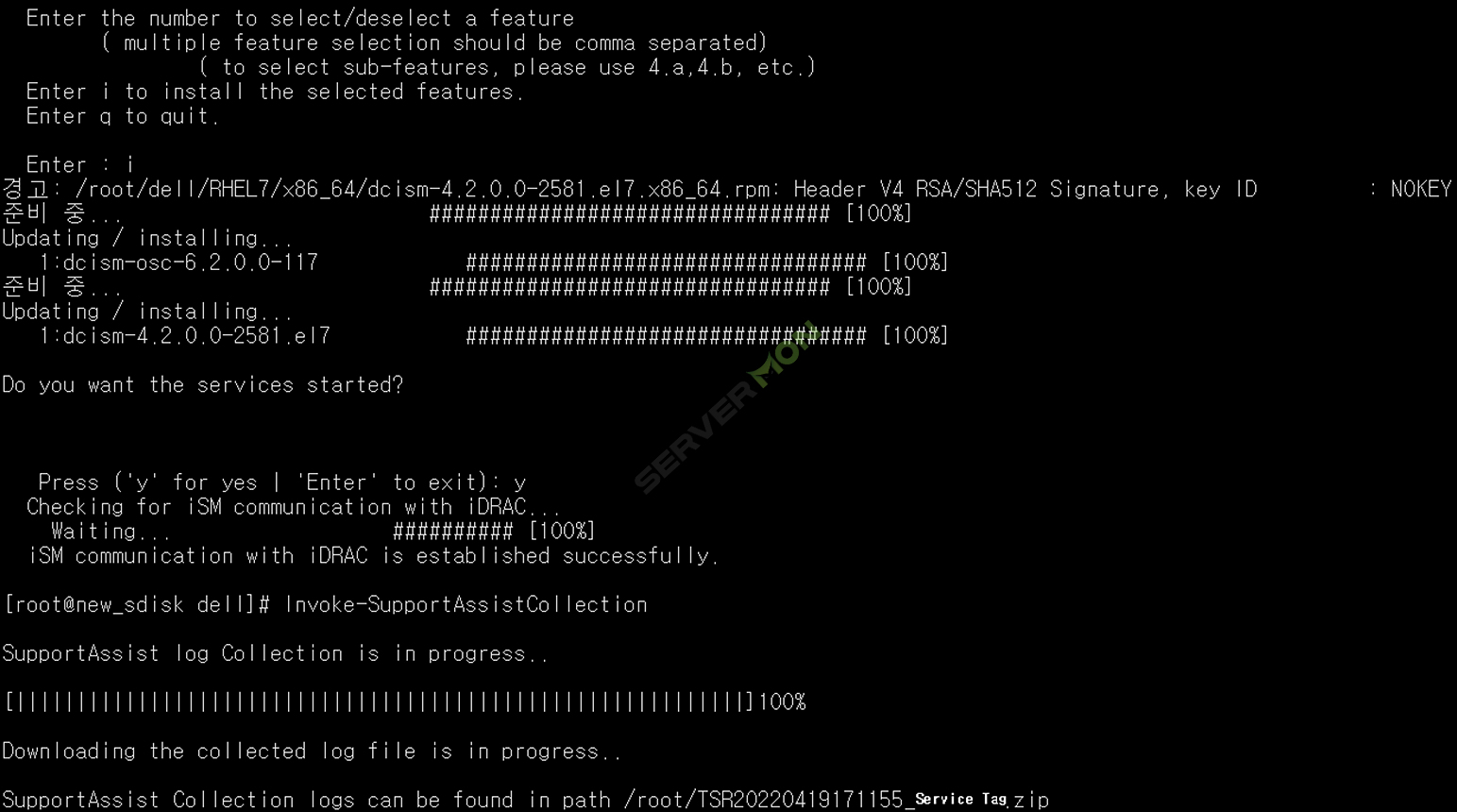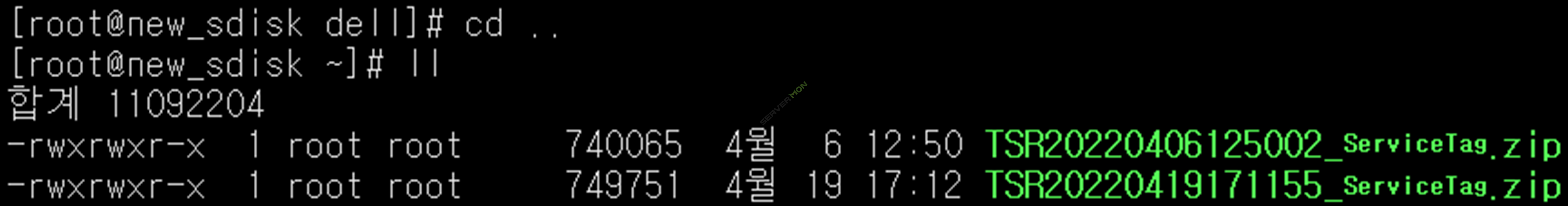 기본적으로 '/root/'에 생성되며, 파일명은 'TSR날짜시간_Service Tag'입니다.