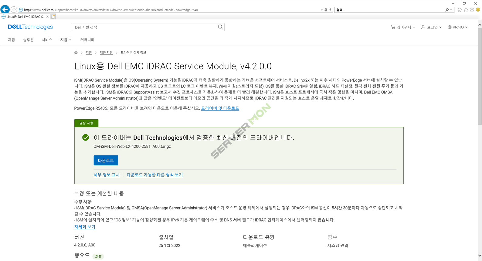 DELL 공식홈페이지에서 배포되는 파일을 다운로드 받습니다.