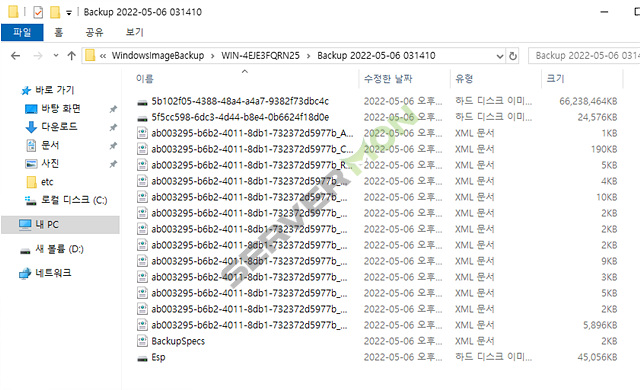 9. 완료된 백업은 해당 디스크의 WindowsImageBackup 폴더에서 확인할 수 있습니다.