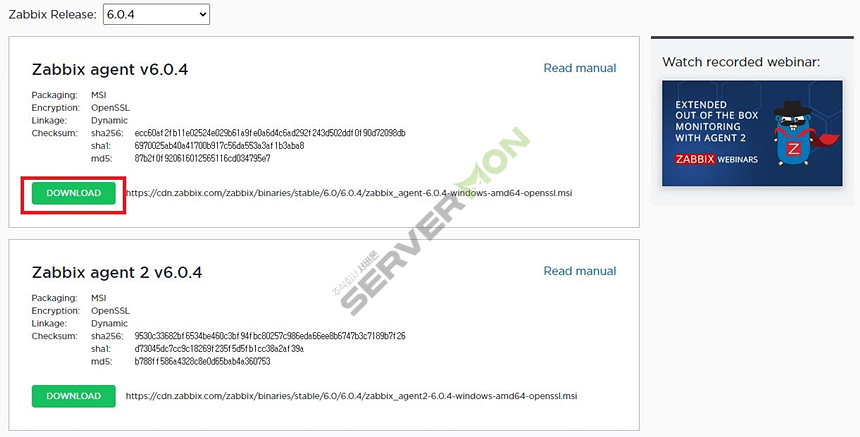 아래 링크를 클릭하여 Windows 용 Agent를 다운로드 합니다.