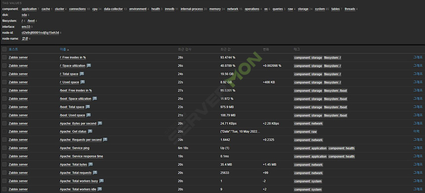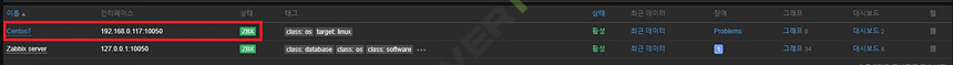 정상적으로 등록되면 1~2분 이내에 ZBX아이콘이 녹색으로 변경되고 모니터링이 활성화 됩니다.