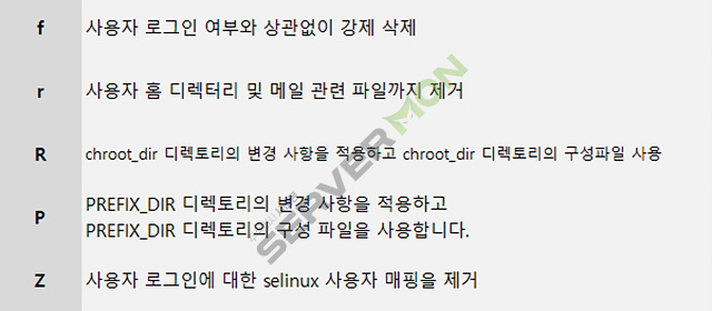 유저를 삭제 하였으며 옵션을 부여하여 디렉토리도 함께 삭제