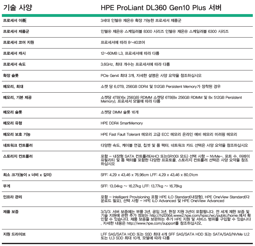**DL360Gen10 Plus 국문 카달로그(아래 다운로드)