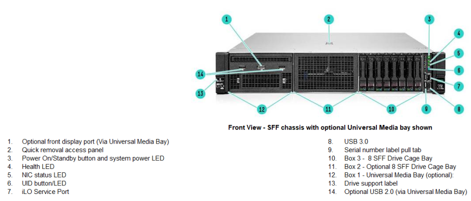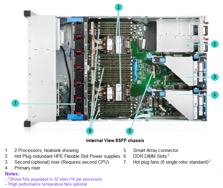 - Trimodal(NVMe/SAS/SATA) HPE스마트 어레이 컨트롤러를 지원합니다.