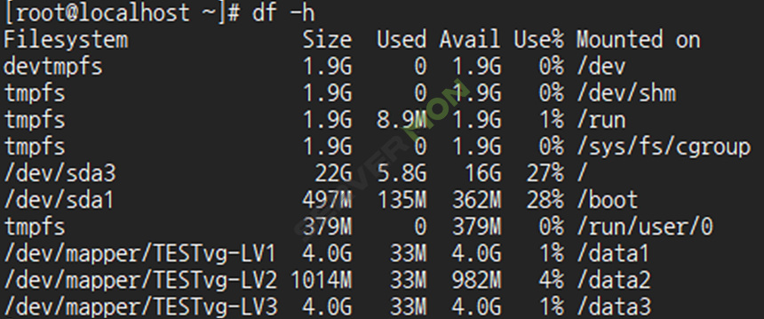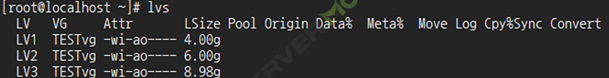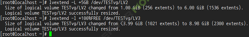 # lvextend -l +100%FREE /dev/TESTvg/LV3