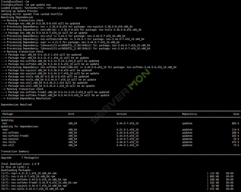 5. yum update nss 을 통해 nss 을 업데이트 해줍니다.