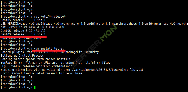yum install telnet 명령어를 통하여 telnet 를 설치 시도 시 이와같이 정상적으로 설치할 수 없음을